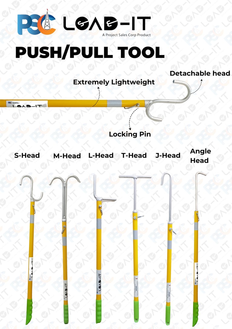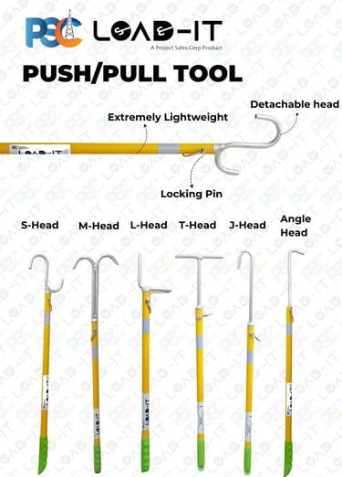 The PSC Load-It Push Pull Stick is a versatile, modular load-handling tool designed for varied industrial applications requiring different head configurations.